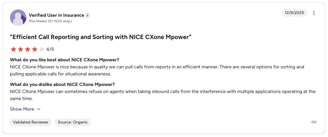 NICE CXone suits enterprises that need workforce management alongside call recording. High-volume B2C sales teams focused on rep coaching and conversion outcomes may find the platform broader than what they need.